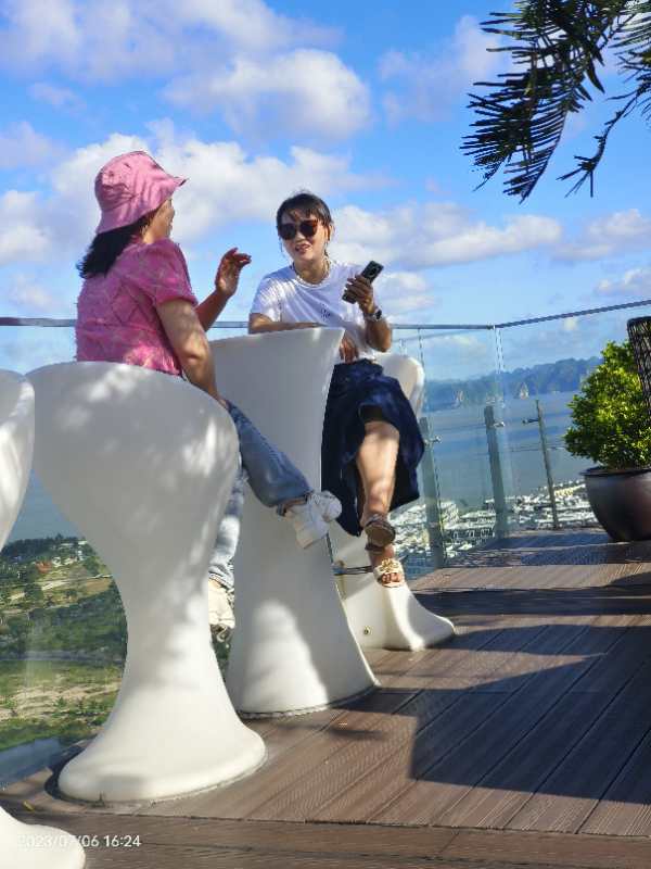 晚上入住的下龍灣五星級(jí)酒店十分豪華,房間布置豪華漂亮,打開窗簾面向大海,更有特色的是樓頂有游泳池、咖啡廳等,可以上去游泳、邊喝咖啡邊靠在椅子上觀看整個(gè)下龍灣的夜景,這也是拍照的絕佳好去處,公司男同事忙著游泳、女同事則忙著合影留念,忙的不亦樂乎。